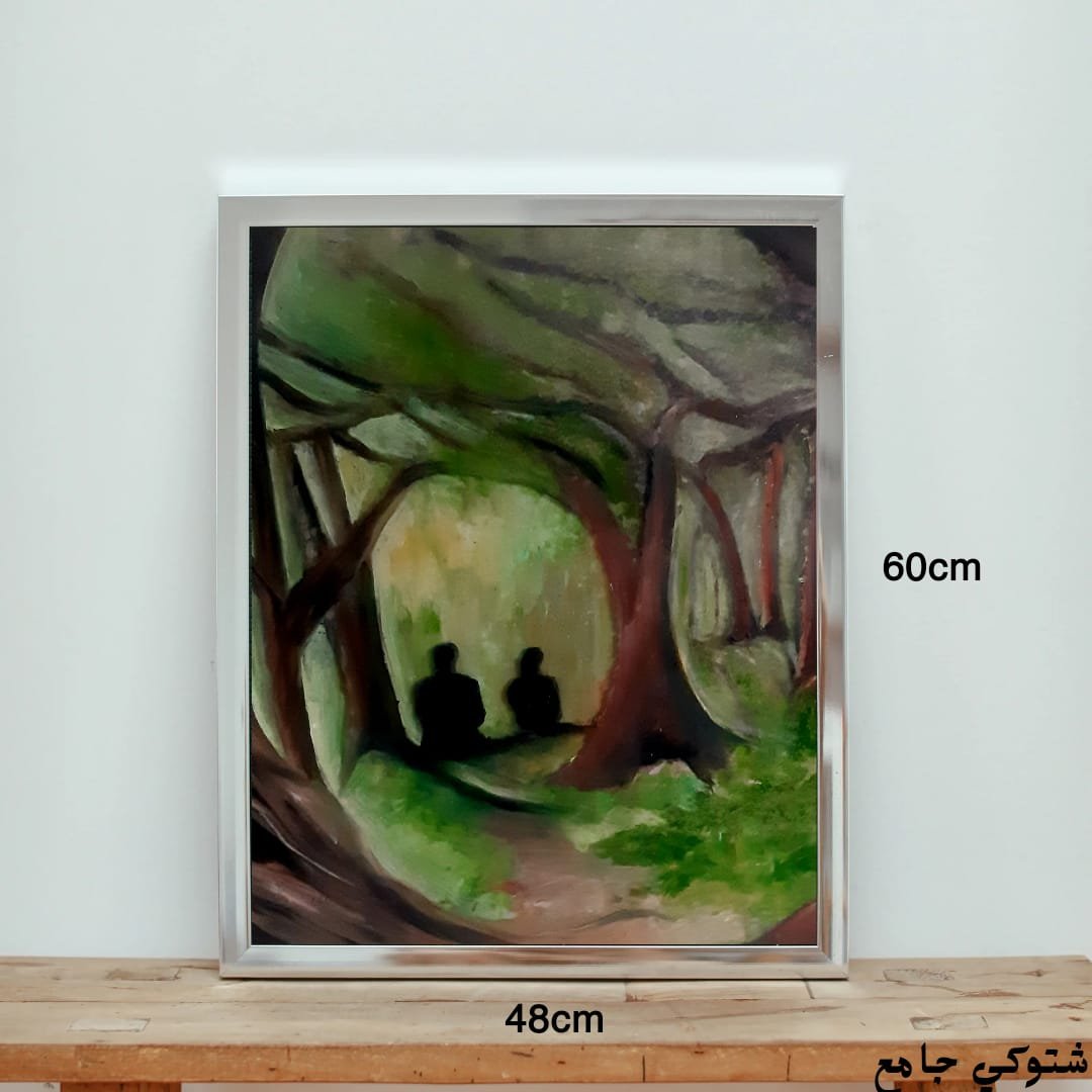 an artistic painting that depicts two young men about to get married, who find themselves in the embrace of nature, surrounded by the lush greenery of the forest, and contemplating the future.